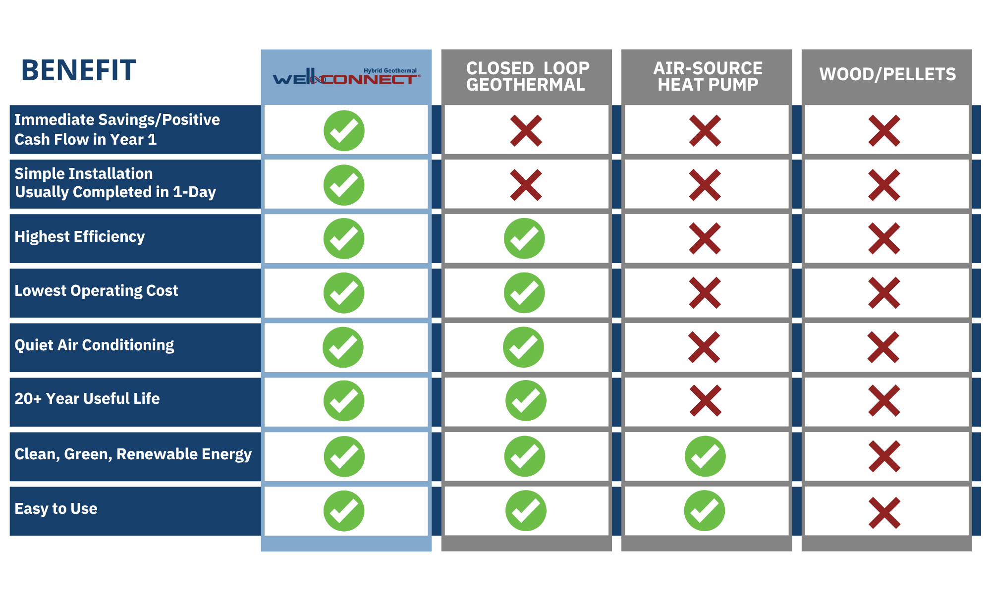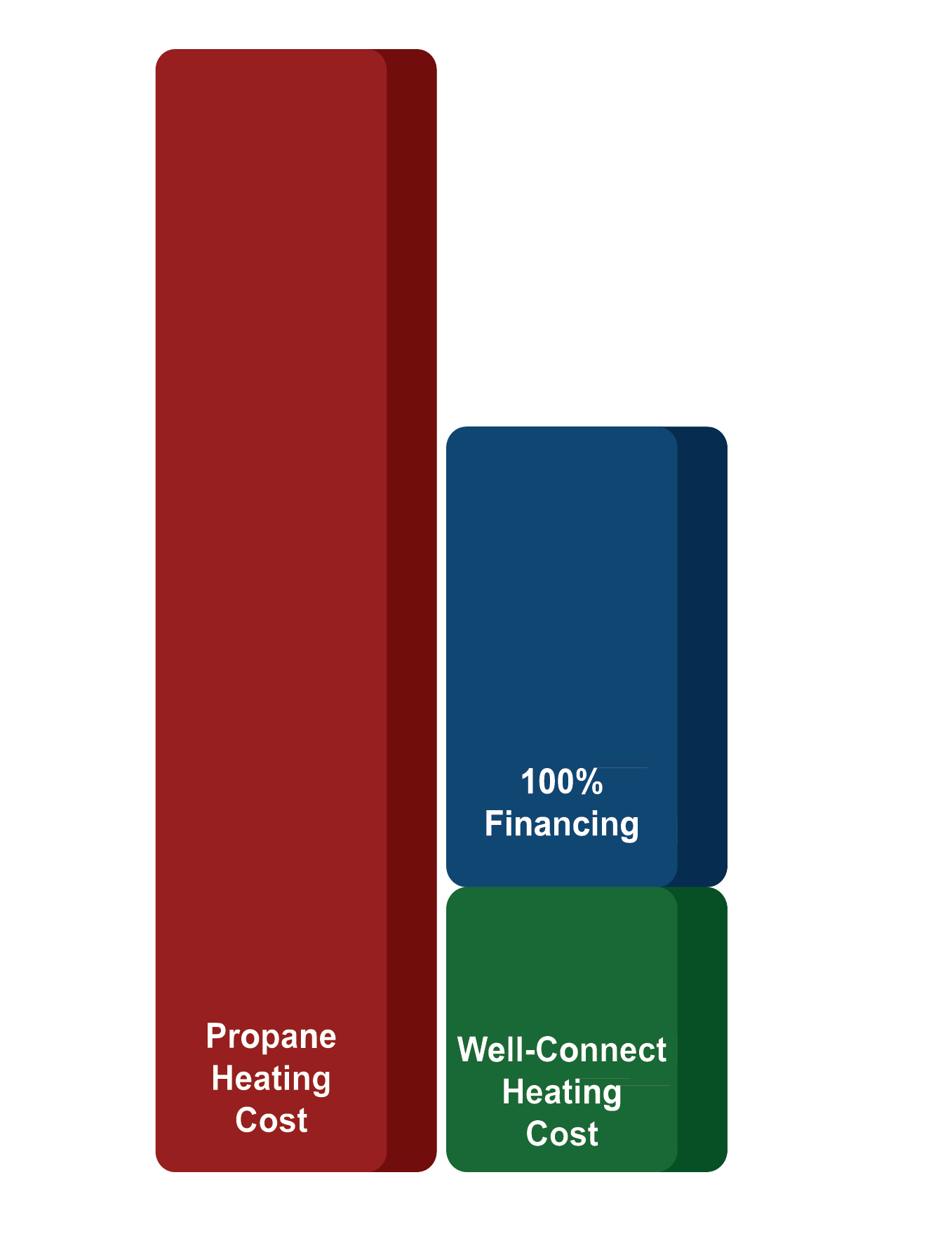 If you are heating with propane, fuel oil, electric or wood, your current heating cost is likely greater than it would be to 100% finance and heat & cool with a Well-Connect.