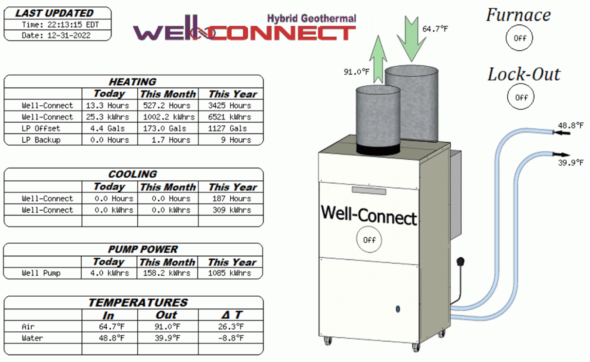 Result: Well-Connect significantly reduces the amount of money you spend on propane or fuel oil to heat your home or it eliminates the need to burn wood.